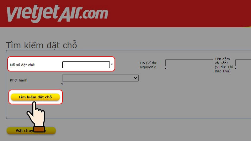 Bước 2: Điền các thông tin yêu cầu và chọn “Tìm kiếm đặt chỗ”.