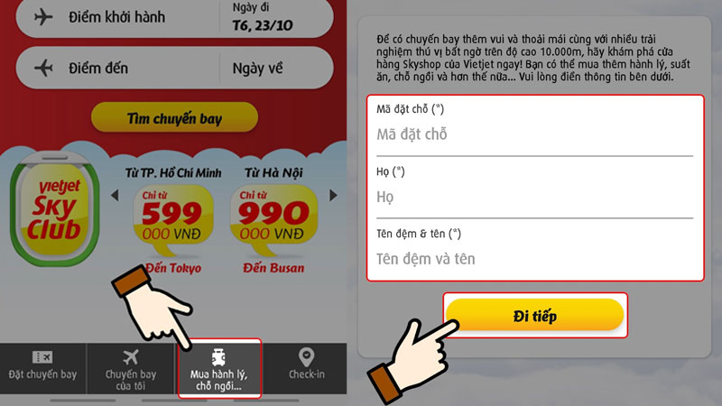 Bước 2: Nhập các thông tin yêu cầu và nhấn vào “Đi tiếp”