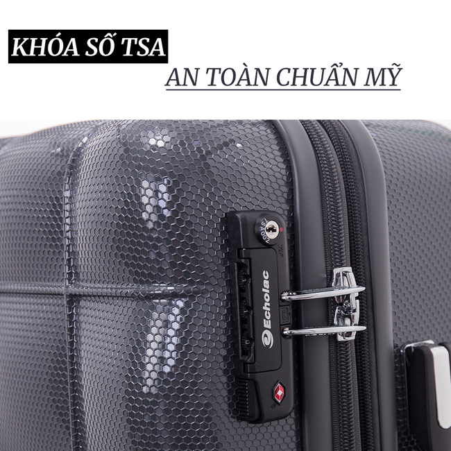 Ngoài ra, vali kéo nhựa Square PC005 có khóa số TSA chuẩn an ninh Hoa Kỳ - khả năng chống dò số và có độ bảo mật cao nhất. Bạn sẽ yên tâm mà không sợ bị bẻ khóa, gây hỏng hóc vali.