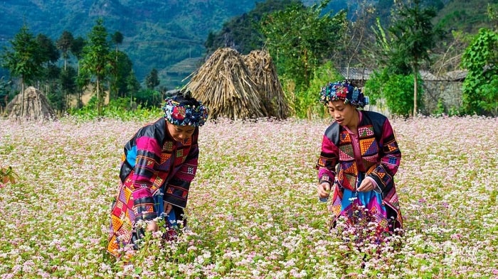 Thường bắt đầu từ tháng 10 và kéo dài đến tháng 12, hoa tam giác mạch không chỉ là biểu tượng của vẻ đẹp thiên nhiên Hà Giang mà còn gắn liền với đời sống văn hóa của đồng bào nơi đây. Ban đầu, hoa có màu trắng, sau chuyển dần sang hồng nhạt, tím phớt rồi đỏ thẫm, tạo nên một bức tranh đầy biến hóa giữa đất trời.