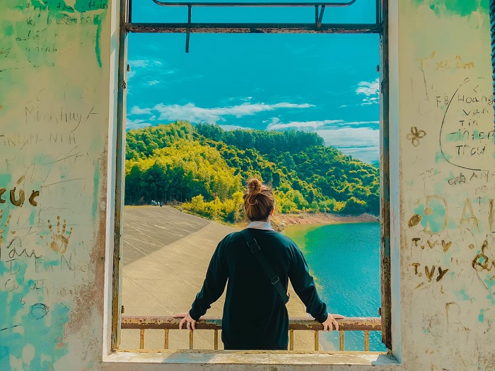 Bên cạnh hồ, một đập bê tông không chỉ là công trình thủy lợi mà còn là địa điểm lý tưởng để bạn tận hưởng những khoảnh khắc thư giãn. Với những bậc thang dựng đứng giữa đồi cỏ xanh mướt, nơi đây trở thành góc sống ảo cực chất. Đừng quên diện những bộ đồ thật năng động để có những bức ảnh thật “chill” nhé!