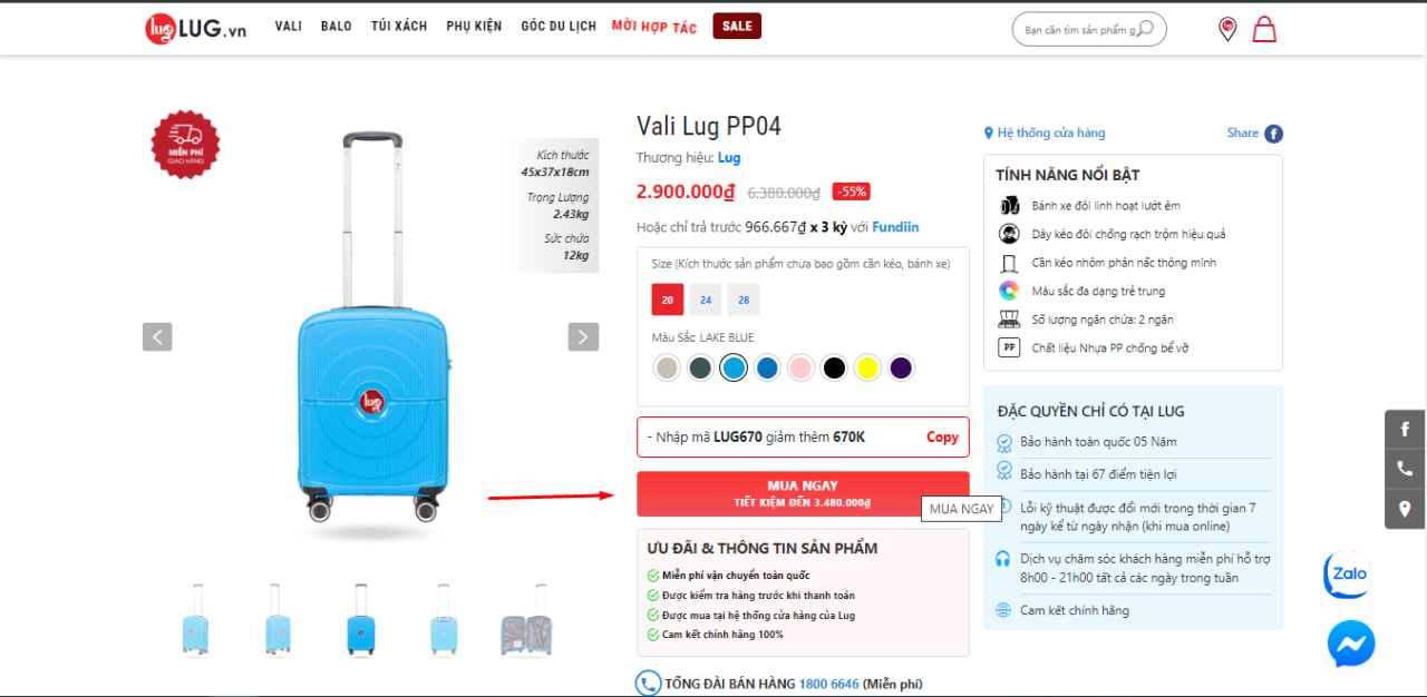 Bước 1: Chọn sản phẩm yêu thích tại website LUG.vn rồi vào trang chi tiết sản phẩm bấm vào "MUA NGAY"