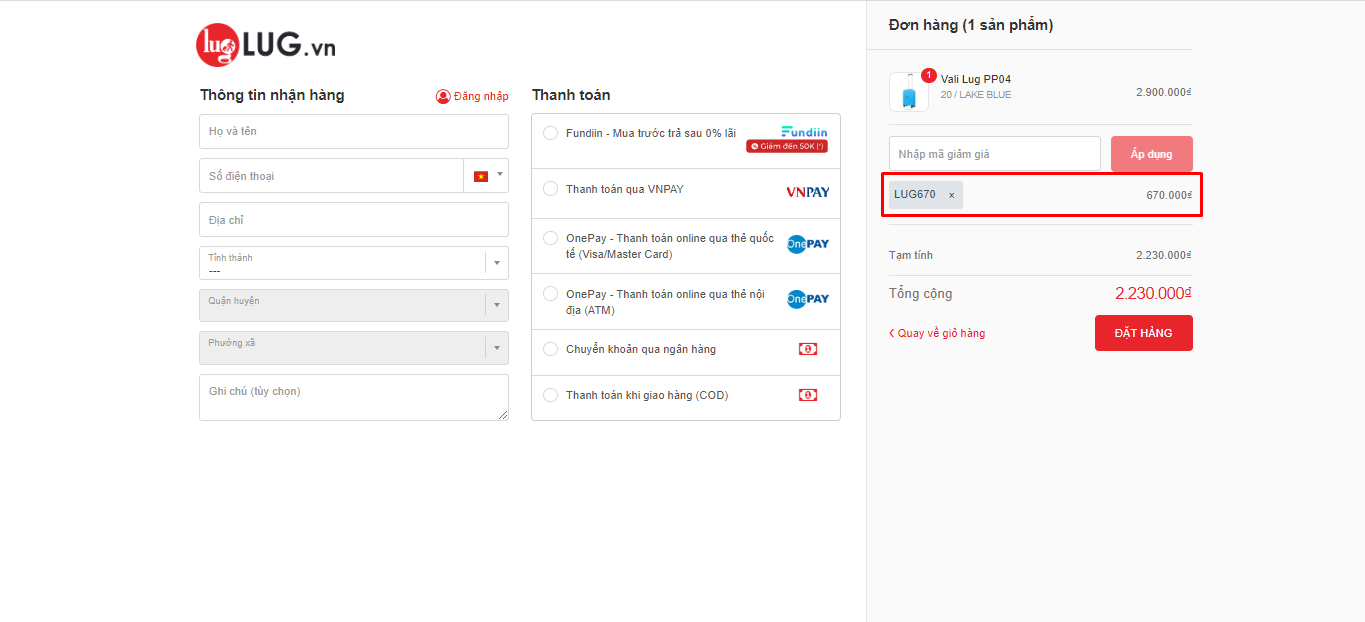 Bước 4: Nhập mã voucher vào ô nhập mã giảm giá