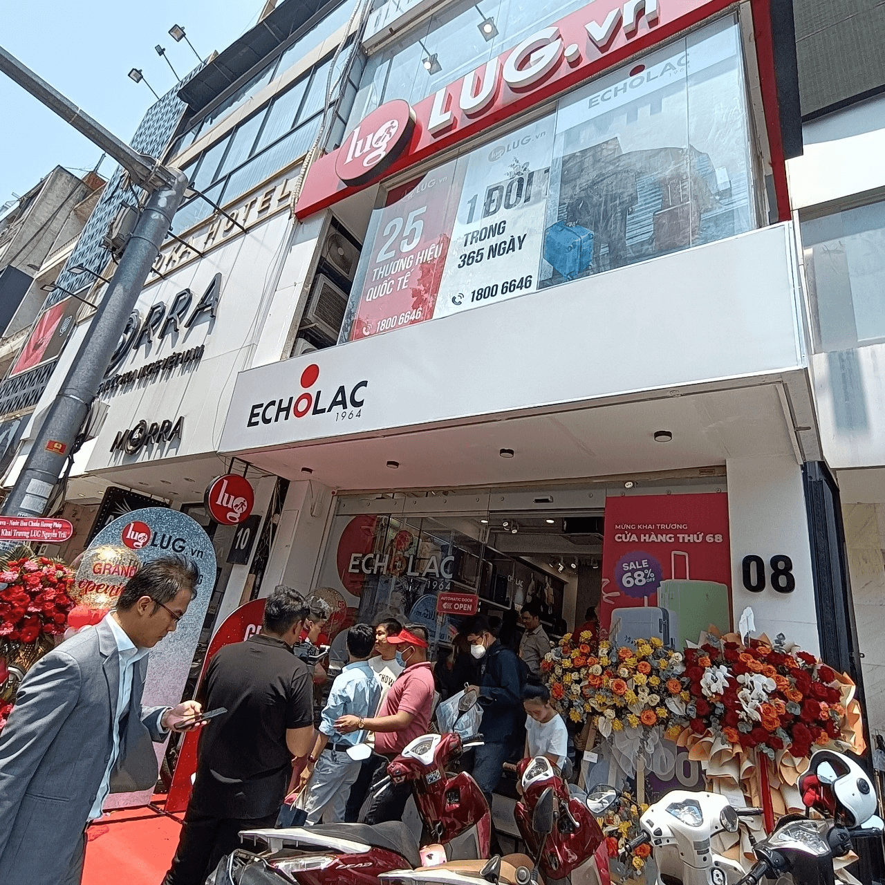 Sự kiện khai trương cửa hàng LUG.vn x Echolac diễn ra tại ngã sáu Phú Đổng, số 08 đường Nguyễn Trãi, phường Bến Thành, Quận 1, Thành phố Hồ Chí Minh, với sự hiện diện của các khách mời như Kiều Nhung - Hoa hậu Nam Bộ 2022, Thúy Nhiên - Á hậu Áo dài Việt Nam 2021, diễn viên Nguyễn Yunie, diễn viên Vũ Đăng và nhiều Tiktokers nổi tiếng khác.