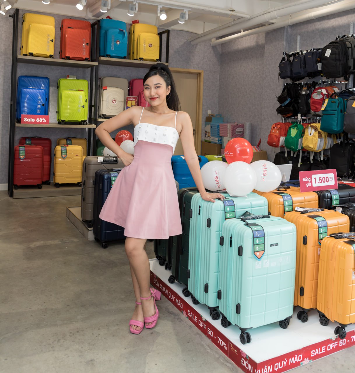Ngoài trưng bày các mẫu vali sành điệu thì khu vực này còn bày bán thêm nhiều sản phẩm vali cho trẻ em, balo, túi xách và các phụ kiện du lịch xinh xắn như bình nước giữ nhiệt, gối cổ êm ái, bao trùm vali,...