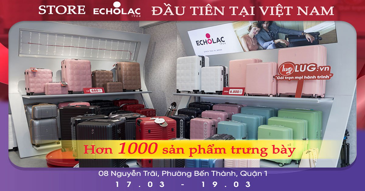 Cửa hàng Echolac - thương hiệu vali hàng đầu từ Nhật Bản đã chính thức có mặt tại Việt Nam, dưới sự phân phối độc quyền bởi LUG, tọa lạc tại vị trí đắc địa ngay ngã 6 Phù Đổng - số 8 Nguyễn Trãi, P. Bến Thành, Q.1, TP.HCM