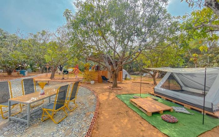 Điểm nổi bật của Khoai Camping Garden Cần Giờ chính là không gian mở hài hòa giữa biển và rừng. Khu cắm trại được bố trí sát mép nước, với các khu vực tách biệt để dựng lều, tổ chức BBQ hoặc nghỉ ngơi.