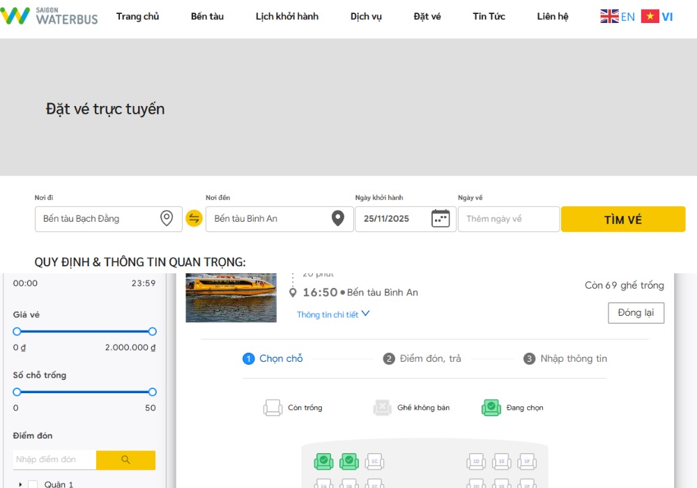 Hướng dẫn đặt vé đi bus sông Sài Gòn
