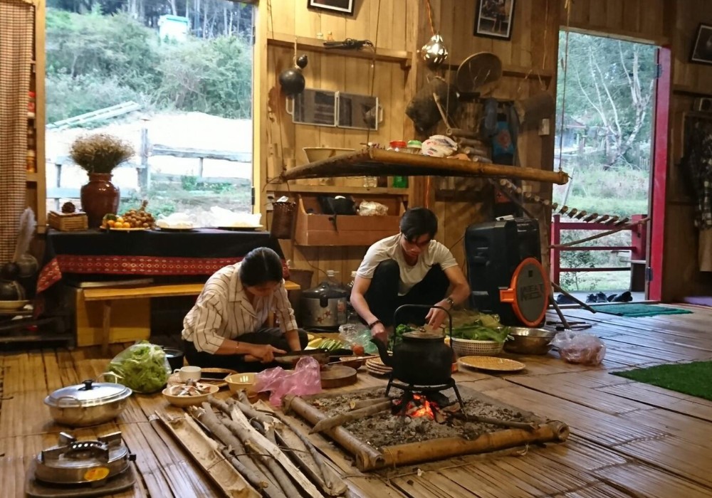 Buổi tối, bạn có thể ngồi quây quần bên bếp lửa, nghe người dân kể chuyện hoặc đơn giản là nằm võng dưới sàn nhà, đọc vài trang sách để tâm trí thật sự được nghỉ ngơi.