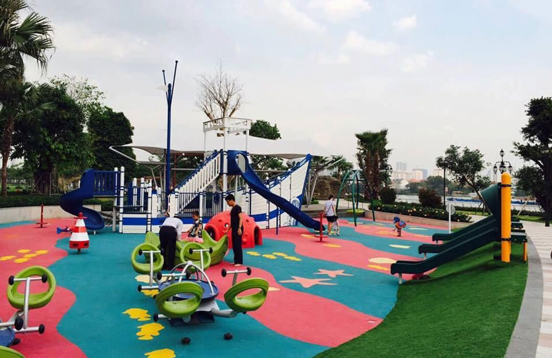 Không chỉ vậy, Vinhomes Central Park còn có nhiều nhà hàng và quán cà phê đa dạng, từ ẩm thực Việt Nam truyền thống đến ẩm thực quốc tế. Khung viên khu đô thị có rất nhiều view chụp ảnh đẹp, hướng nhìn ra thành phố, Landmark 81 và một số trò chơi được bố trí cho trẻ em.