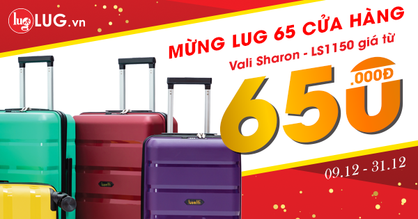 Mừng đạt mốc 65 cửa hàng hành lý trên toàn quốc, LUG.vn mang đến ưu đãi khủng đầy hấp dẫn - Mua vali Sharon LS1150 với giá chỉ 650.000vnđ.