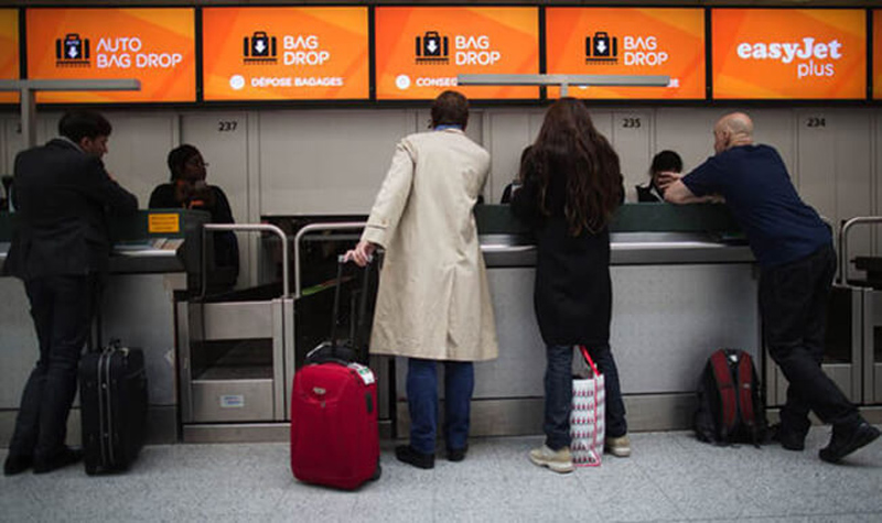 Khi đến quầy làm thủ tục check-in, bạn chỉ cần mang theo vali xách tay đã chuẩn bị trước để nhân viên kiểm tra thấy đúng tiêu chuẩn. Balo hoặc túi xách chứa hành lý thừa cân có thể gửi người thân hay bạn bè xách hộ đứng ở xa quầy. Sau khi làm xong thủ tục thì chạy đến lấy balo rồi vào cửa quét an ninh.