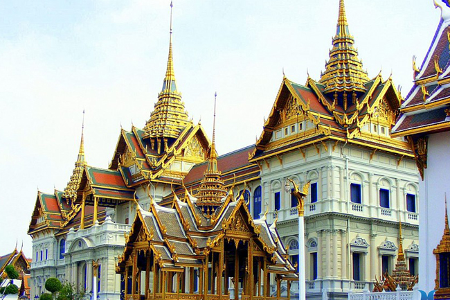 Vào buổi sáng, bạn có thể thăm thú những địa danh nổi tiếng của Bangkok. Đầu tiên, hãy ghé Hoàng cung Thái Lan mở cửa từ 8h30. Vì không gian này rất rộng nên bạn khó thể đi hết được trong vòng vài giờ ít ỏi. Bạn nên khám phá Đại Hoàng Cung Grand Palace - nơi được khen là “Nghệ thuật đại toàn của Thái Lan”. Chú ý trang phục khi tới đây để tránh gây phản cảm với người dân địa phương nhé.