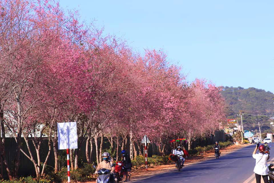 Con đường Trần Hưng Đạo nổi bật với hai hàng mai anh đào bung nở hai bên, biến nơi đây thành một cung đường đầy thơ mộng. Đây là điểm đến không thể bỏ qua cho những ai muốn đắm chìm trong sắc hồng của mùa xuân Đà Lạt.