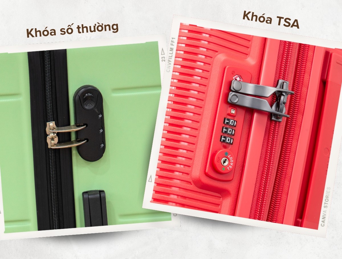 An toàn của hành lý là điều không thể bỏ qua. Hãy chọn vali có khóa TSA – loại khóa tiêu chuẩn quốc tế, thường được yêu cầu khi di chuyển qua các sân bay quốc tế. Hệ thống khóa kéo cũng cần chắc chắn, không dễ bị hỏng hay bung ra trong quá trình sử dụng.
