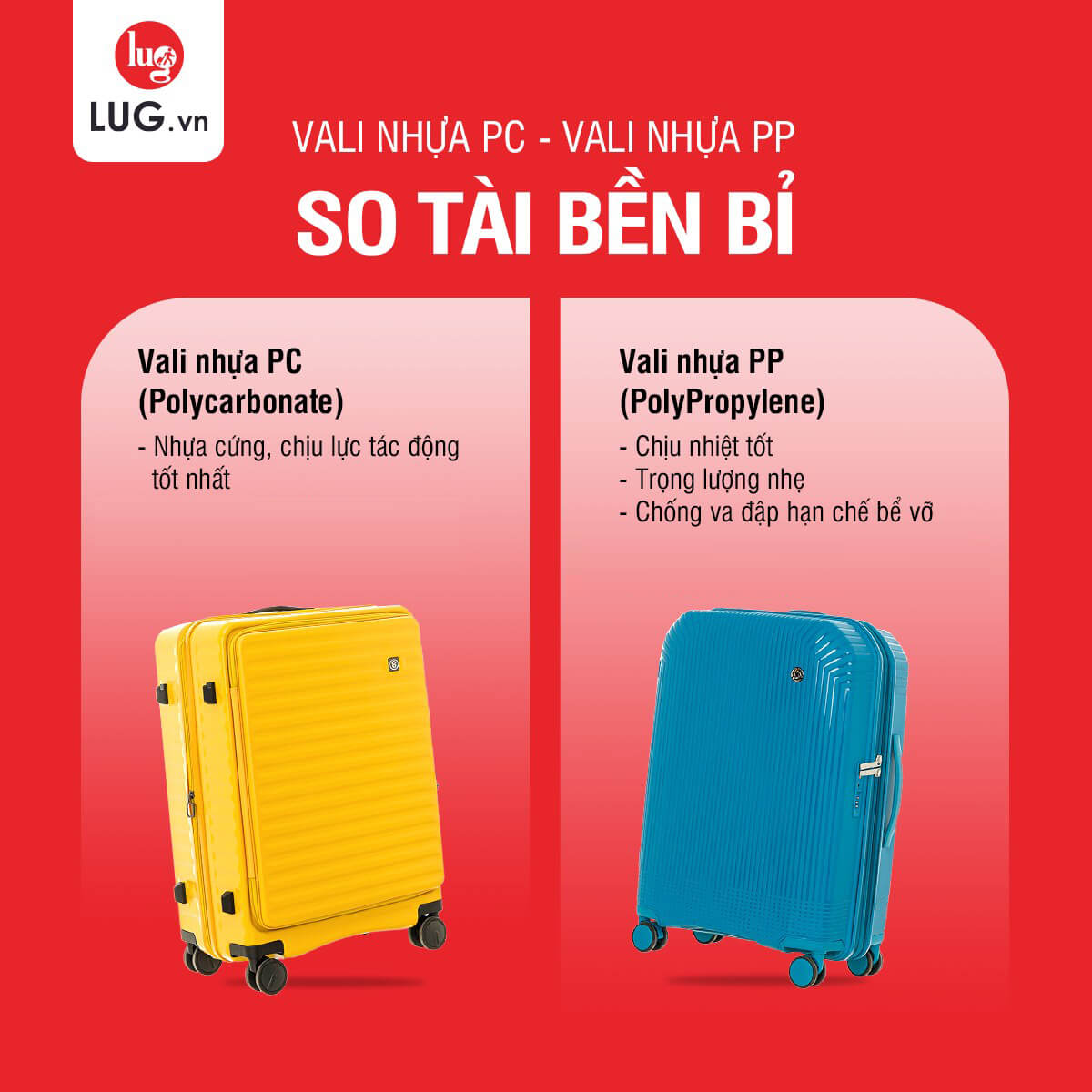Nên mua vali nhựa PP hay PC là thắc mắc chung của đại đa số khách hàng khi có nhu cầu chọn hành lý dịch chuyển. Trên thực tế, mỗi loại nhựa đều sẽ có những ưu điểm và nhược điểm khác nhau. Mời bạn cùng LUG tìm hiểu kỹ hơn về tính chất của 2 dòng nhựa này để dễ dàng chọn được dòng hành lý phù hợp nhé!