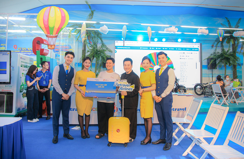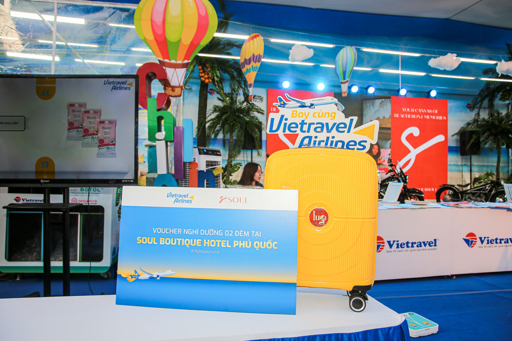 Thêm vào đó, sự đồng hành của LUG.vn sẽ mang đến những phần quà hấp dẫn cho quý khách khi tham gia các hoạt động tương tác, mini game hay bốc thăm may mắn tại gian hàng Vietravel Airlines. Những món quà như vali kéo thời trang, bộ phụ kiện du lịch tiện ích, gối cổ êm ái, túi cói thời trang,... đều là những vật dụng hữu ích để mỗi chuyến đi của bạn luôn trọn vẹn.