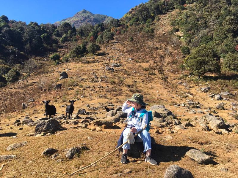 Khi đã thưởng thức trọn vẹn khung cảnh thiên nhiên từ đỉnh núi và lưu giữ kỷ niệm với cột mốc Nhìu Cồ San ở độ cao 2.965m, bạn sẽ theo những lối mòn để trở về khu lán trại. Sau khi ăn trưa và thu dọn hành lý, các đoàn trekking bắt đầu nối nhau xuống núi, băng qua một bãi thả dê rộng lớn.