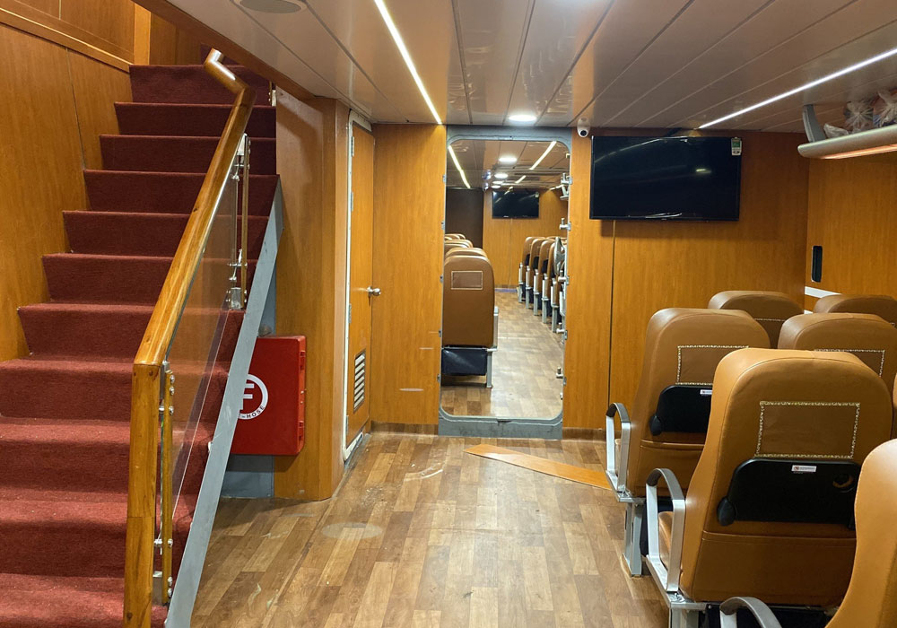 Phà Cần Giờ Vũng Tàu có không gian tương đối rộng rãi và được bố trí nhiều ghế ngồi êm ái để khách hàng cảm thấy thoải mái nhất. Ngoài ra, trên phà còn được bố trí tiện nghi các thiết bị cần thiết như cổng sạc, máy lạnh,... Nhà vệ sinh cũng được lắp đặt vô cùng sạch sẽ và tiện lợi.