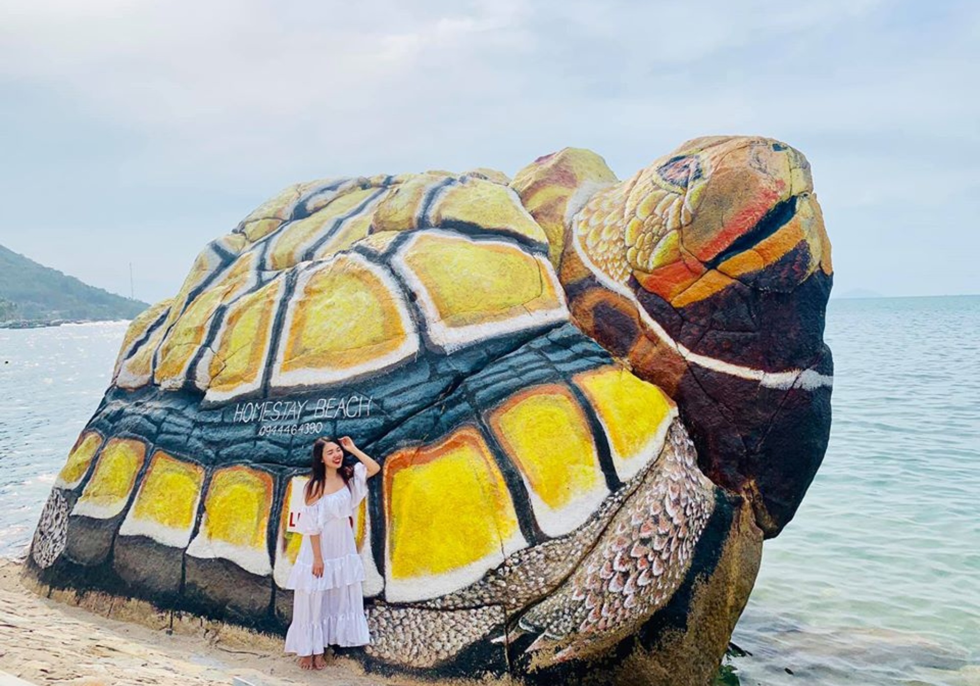 Không chỉ vậy, con dốc này còn đặc biệt nổi tiếng với phong cảnh Cụ Rùa Đá nằm nổi bật bên bờ biển. Đây là tảng đá lớn được người dân địa phương sơn vẽ thành hình chú rùa màu vàng đầy độc đáo. Cụ Rùa Đá không chỉ là điểm check-in độc đáo mà còn được người dân địa phương xem như linh vật mang lại may mắn cho du khách.