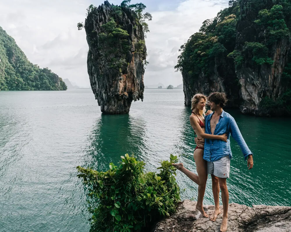 Đảo James Bond còn được gọi là Đảo Khao Phing Kan. Đây là một hòn đảo nhỏ nằm trong khu vực Vịnh Phang Nga, gần Phuket. Trên đảo có một hòn đá "nghiêng" nổi tiếng, được gọi là "Hòn Đá James Bond", đây chính là địa điểm quay các cảnh phim nổi tiếng và được nhiều du khách đến check-in chụp ảnh. Nước biển trong xanh với nhiều vách đá hùng vĩ là điểm cộng để thu hút khách du lịch nếu chưa biết Phuket Thái Lan có gì đẹp.