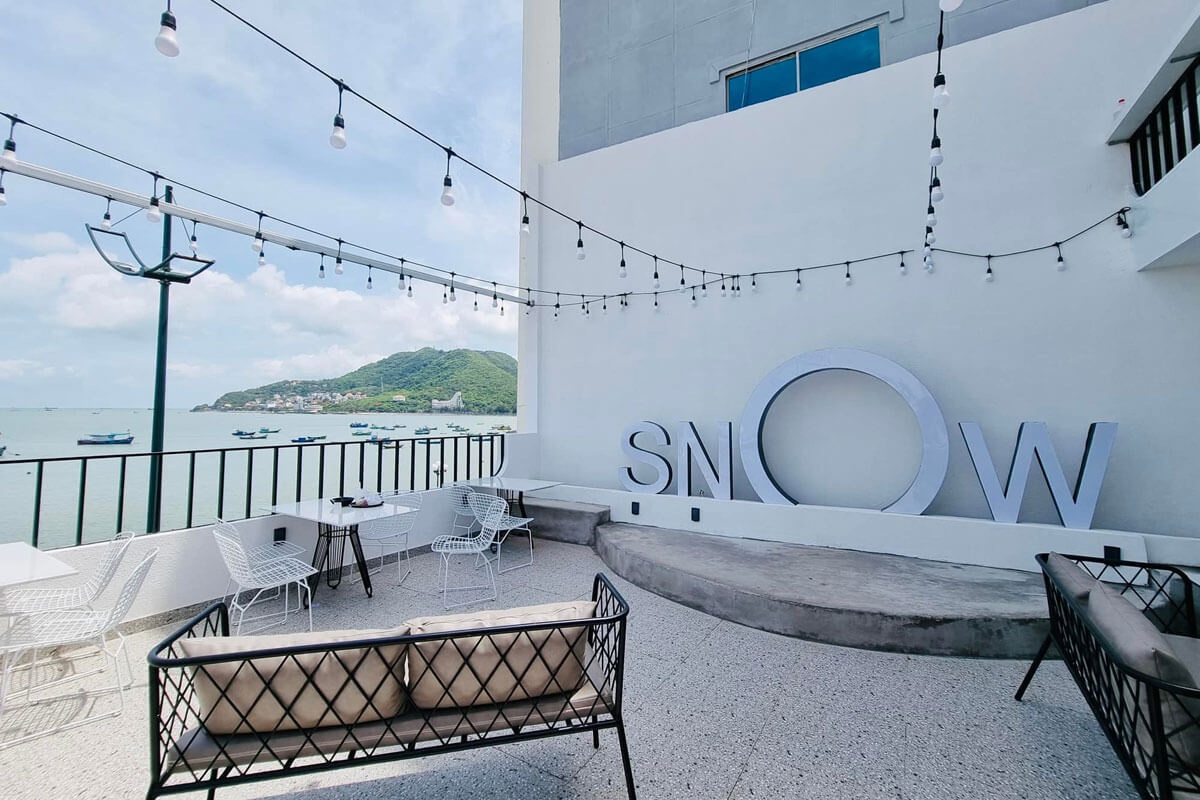 Không chỉ được biết đến là quán cafe đẹp ở Vũng Tàu view biển lãng mạn, Snow còn được du khách đặc biệt yêu thích bởi nước uống ngon và có bán cả bánh ngọt để thưởng thức. Không gian quán vô cùng thoáng đãng với lối thiết kế hiện đại và cá tính ngay bên bờ biển, mang đến trải nghiệm thư thái cho bạn. Lối decor tối giản nhưng sang trọng với nhiều góc chụp ảnh đẹp, đảm bảo sẽ cho bạn 1000 tấm hình đẹp khi check-in tại đây.