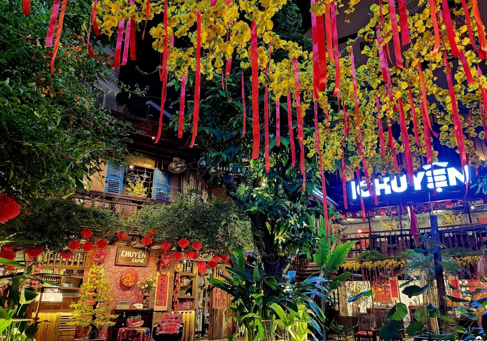 Đây là quán cafe luôn được đánh giá cao về không gian thưởng thức, hương vị nước uống và lối decor theo mùa ấn tượng. Trong không gian gỗ ấm cúng, quán decor Tết mang không khí của vùng Tây Bắc, vừa truyền thống vừa mới mẻ với người Sài Gòn. Nếu bạn đang tìm kiếm một quán cafe chụp ảnh Tết 2026 vừa đẹp, vừa rẻ, vừa rộng rãi thì Chuyện Cà Phê rất đáng để trải nghiệm.