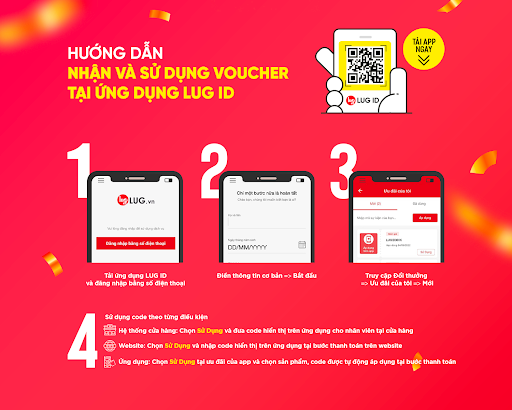 - Ứng dụng LUG ID: Chọn ''Sử Dụng'' tại ưu đãi của app và chọn sản phẩm, code được tự động áp dụng tại bước thanh toán