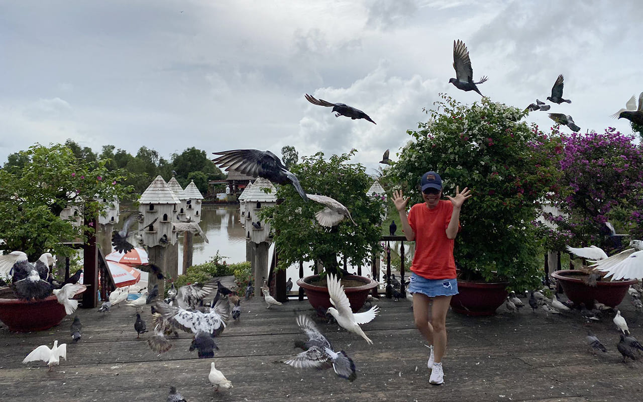 Gần lối vào, ở khu vực phòng vé chính, chỉ cần băng qua một con kênh Trà Sư, du khách sẽ thấy những ngôi nhà của chim bồ câu. Tại đây có khoảng 400 con chim được thả tự do trong rừng, nên nơi này được gọi là "Thành phố Bồ Câu." Khung cảnh nơi đây rất lãng mạn, du khách có thể chụp ảnh check-in, chụp ảnh cưới, cho chim ăn và tham gia nhiều hoạt động thú vị khác.