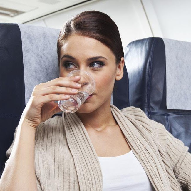 Bạn nên uống một ít nước trước khi bay và trong lúc trên máy bay. Nên bổ sung đầy đủ nước cho cơ thể để tránh cảm giác mệt mỏi hơn. Bạn cần tránh các thức uống có cồn hay caffeine vì chúng sẽ kích thích thần kinh của bạn, nhất là khi đang ở độ cao lớn và không khí loãng hơn so với mặt đất