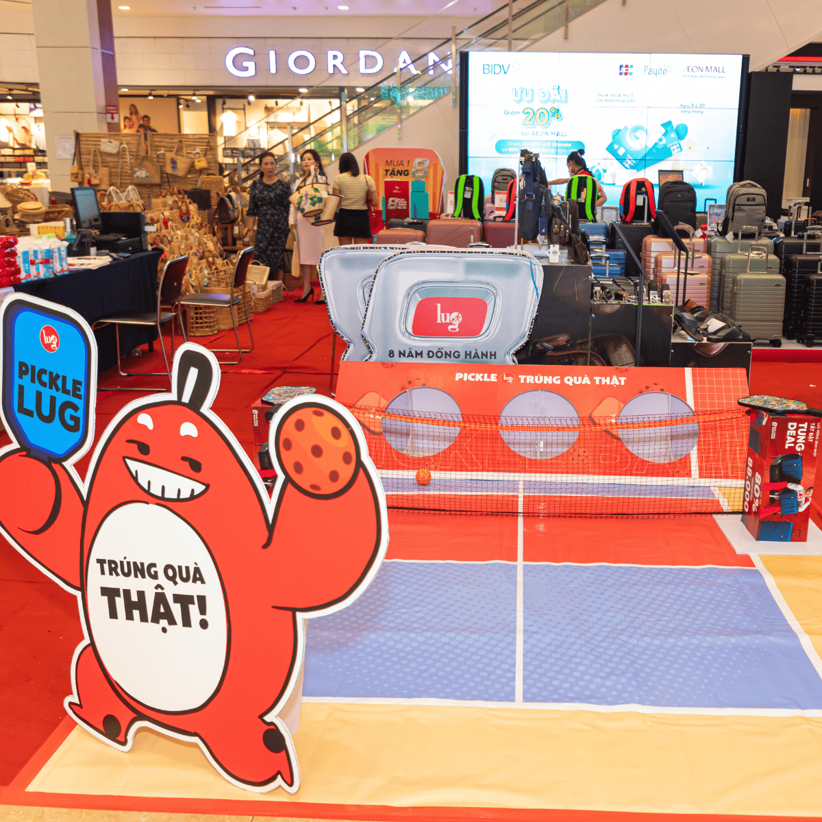 Trong sự kiện kỷ niệm 8 năm thành lập LUG tại Aeon Mall Bình Dương vừa qua, bên cạnh chương trình Lotoshow hoành tráng, LUG còn mang đến minigame vô cùng hấp dẫn - Pickle Ball phiên bản LUG. Đây là trò chơi mới lạ, thú vị dành cho tất cả khách hàng, từ người lớn đến các em nhỏ, mang lại không khí vui nhộn và sôi động cho sự kiện.