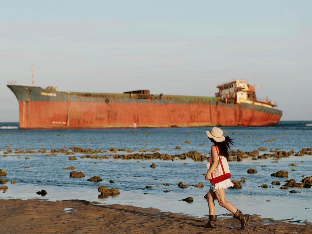 Con tàu mắc cạn bị bỏ hoang từ lâu đã xuất hiện nhiều sự mai một và hư hỏng. Khi thủy triều rút, cảnh tượng của bãi biển hiện lên vô cùng ma mị đầy bí ẩn với hình ảnh con tàu ma cũ kỹ, rỉ sét nằm bơ vơ trên mặt bờ. Cảnh quan này khiến không ít du khách liên tưởng đến hình ảnh của vùng đất bị bỏ hoang, hậu tận thế, những chuyến hải trình ngập tràn nỗi nhớ,...