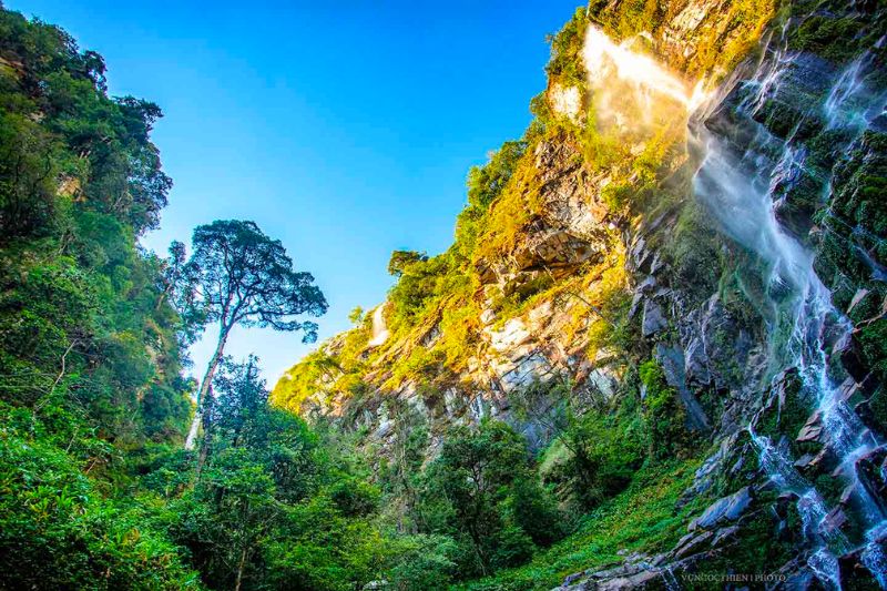 Từ chân thác, bạn có thể cảm nhận rõ sự mạnh mẽ của dòng nước khi bầu không khí xung quanh luôn mát lạnh, dễ chịu. Dòng thác không ngừng chảy xiết, tựa như mạch nguồn sống của núi rừng Bát Xát, làm nổi bật lên vẻ đẹp oai hùng và đầy sức sống nơi đây.