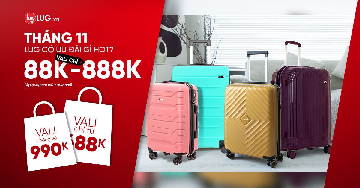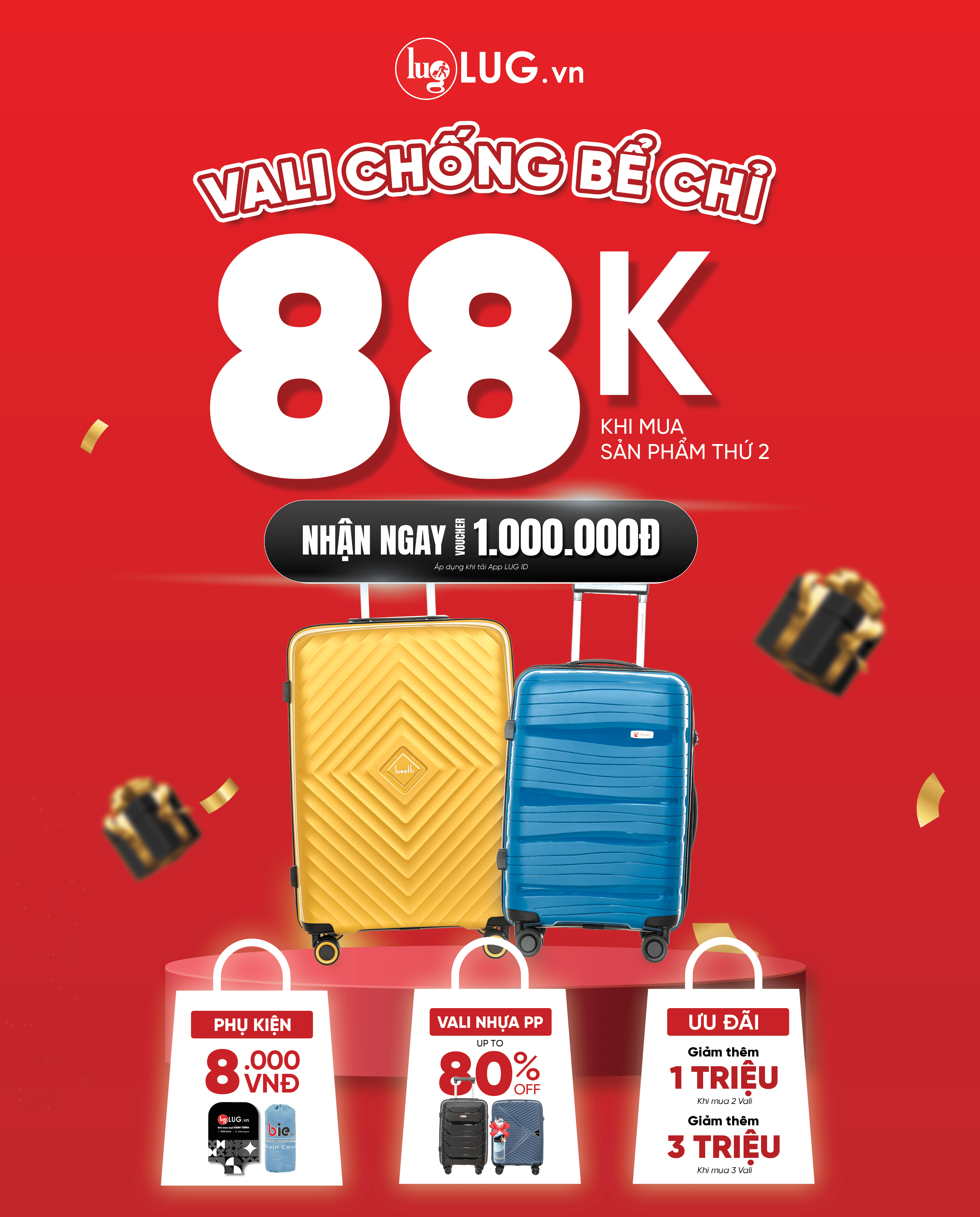 Để mọi khách hàng đều có thể sở hữu một ngời bạn đồng hành chất lượng cho những chuyến đi cuối năm, LUG đem đến cho khách hàng ưu đãi vali quốc tế giảm sốc chỉ 888K khi mua cái thứ 2 size 20.