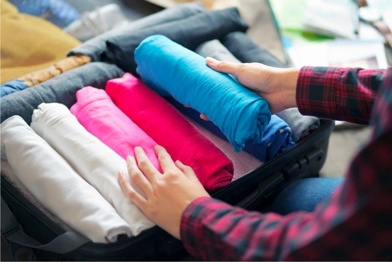 Một trong những mẹo tối ưu không gian vali hiệu quả nhất là cuộn tròn quần áo thay vì gấp phẳng. Cách này giúp giảm nếp gấp, tiết kiệm diện tích và dễ sắp xếp theo từng nhóm. Áo thun, quần jeans, đồ mặc nhà hay đồ ngủ đều rất phù hợp để cuộn. Với áo sơ mi hoặc trang phục cần giữ form, bạn có thể gấp gọn rồi đặt ở lớp trên cùng của vali để hạn chế nhăn.