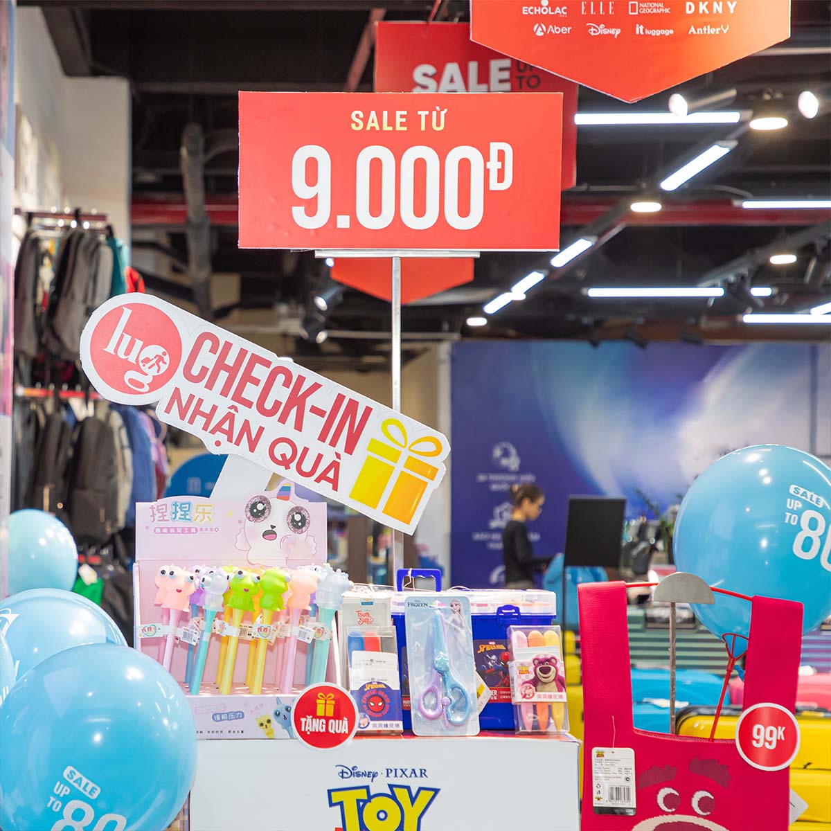 - Giảm giá lên đến 80% toàn bộ cửa hàng: Rất nhiều vali, balo, phụ kiện,... có ưu đãi bất ngờ và quà tặng chất lượng, giúp khách hàng tối ưu chi phí.