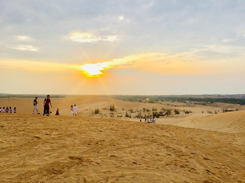 Buổi sáng sớm là thời điểm lý tưởng để đến đồi cát bay, khi nhiệt độ còn mát mẻ và ánh sáng dịu nhẹ. Đây cũng là lúc du khách có thể vừa ngắm bình minh, vừa tận hưởng không gian tĩnh lặng hiếm có trước khi nơi này trở nên đông đúc hơn trong ngày.