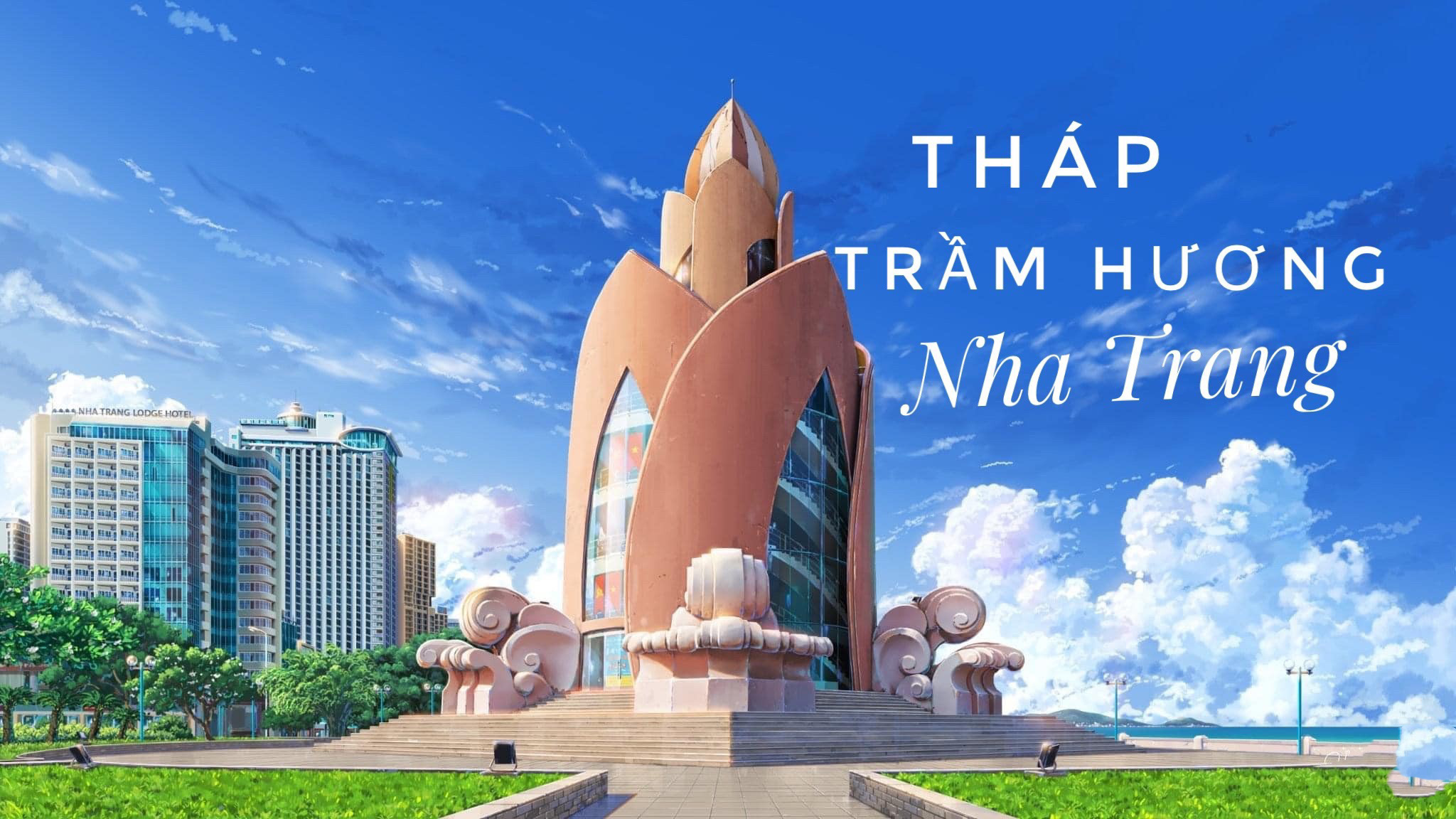 Nằm nổi bật giữa quảng trường 2/4 là tháp Trầm Hương - một địa điểm du lịch Nha Trang mà bất cứ du khách nào cũng nên ghé đến một lần. Tháp Trầm Hương sở hữu chiều cao ấn tượng 45m, gồm 6 tầng và tổng diện tích sàn lên tới 3.500m². Thiết kế độc đáo của tháp được lấy cảm hứng từ hình ảnh bông sen nở, với tông màu cam và hồng làm chủ đạo, tạo nên vẻ đẹp mềm mại và ấn tượng.