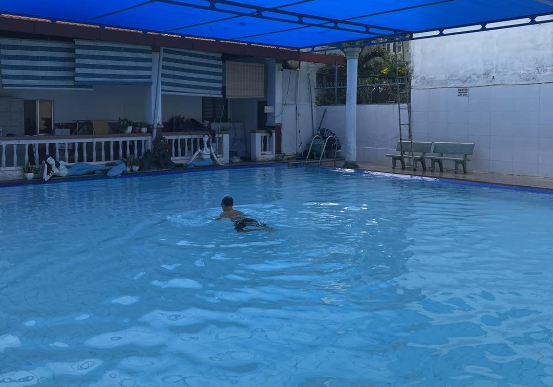 Hồ nằm trong khuôn viên khách sạn Victory, có mái che kiên cố và không gian cực kỳ yên tĩnh. Nước ở đây rất sạch, ít mùi Clo và có khu vực nước nóng nhẹ, phù hợp cho cả người lớn và trẻ em bơi lội thư giãn.
