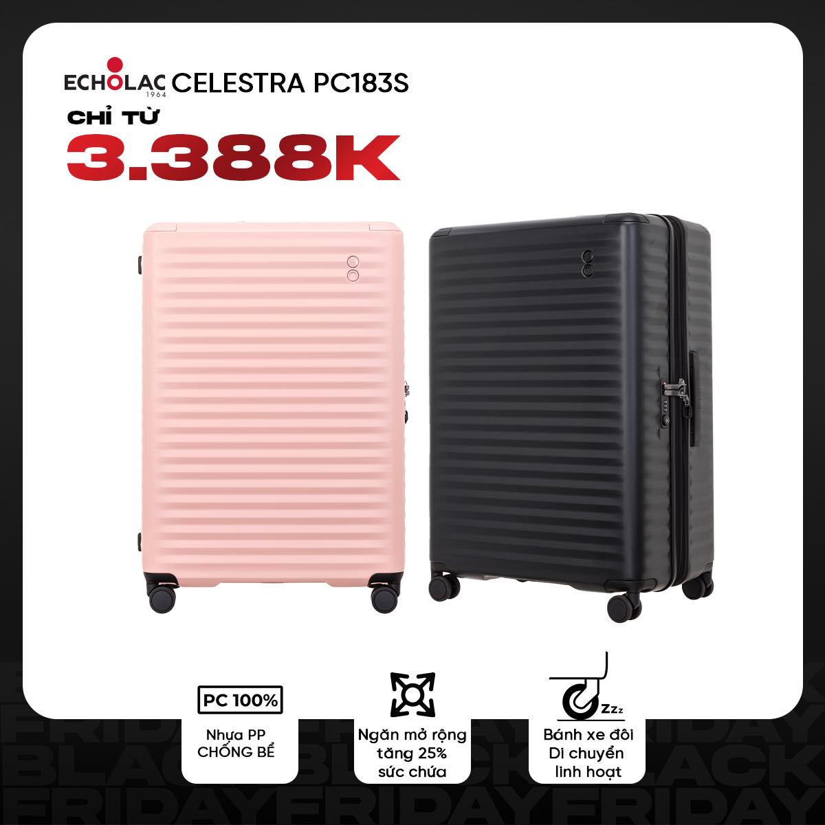 Nếu bạn đang tìm một chiếc vali cao cấp tập trung vào độ bền và vẻ đẹp tinh tế, Echolac PC183S là ứng viên sáng giá. Dịp Black Friday năm nay, sản phẩm được giảm 60%, đưa mức giá xuống chỉ từ 3.388.000 đ – một mức giá hấp dẫn cho dòng vali sử dụng 100% Polycarbonate cao cấp.
