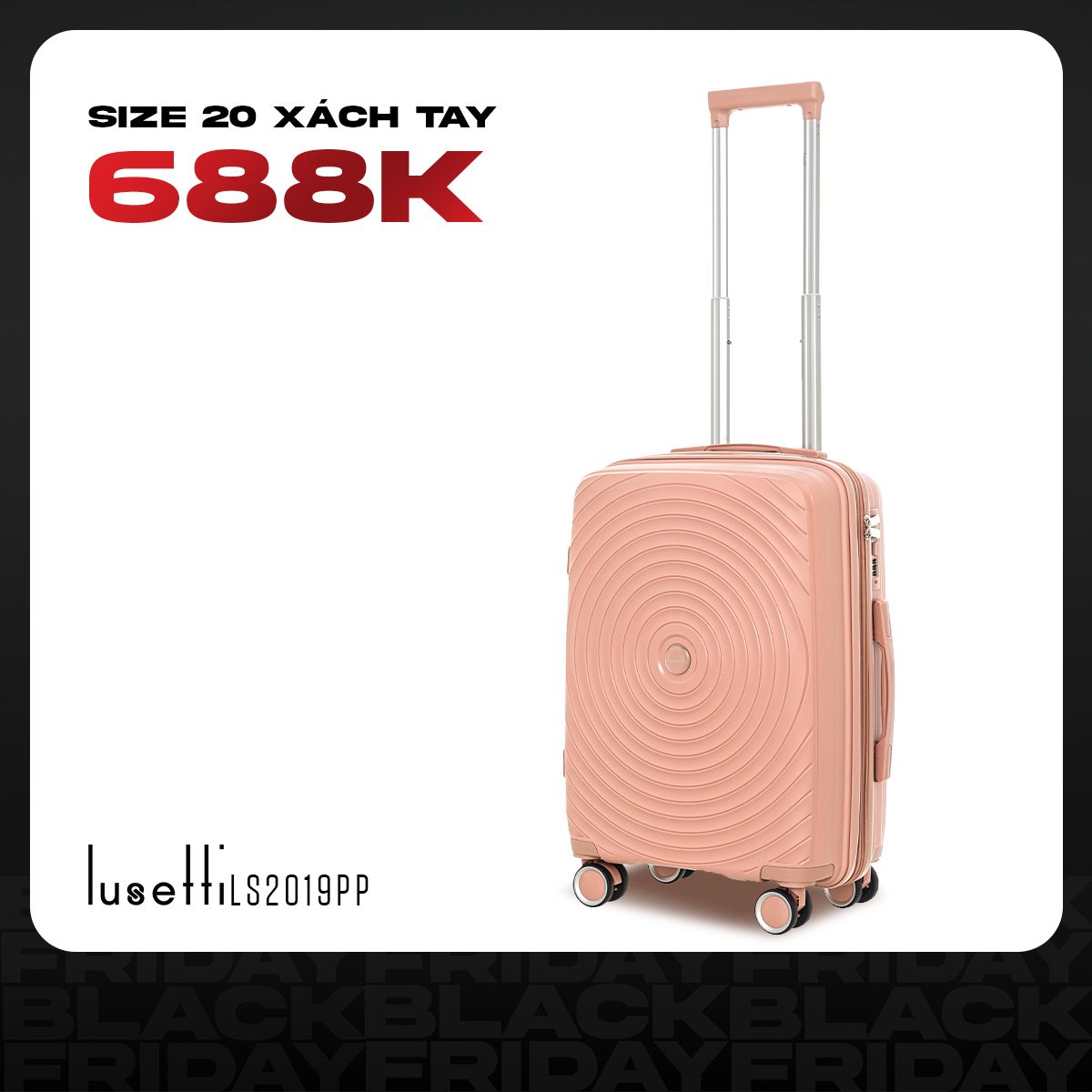 Lusetti LS2019PP là lựa chọn kinh tế nhưng lại sở hữu đầy đủ các tính năng cần thiết cho người dùng hiện đại. Mức giá Black Friday chỉ từ 688.000đ giúp sản phẩm trở thành “best-seller” trong nhóm vali phân khúc phổ thông. Mẫu vali được làm từ nhựa PP có khả năng đàn hồi tốt, hạn chế nứt bể khi chịu lực tác động, phù hợp cho những chuyến đi ngắn ngày hoặc sử dụng hằng tuần.