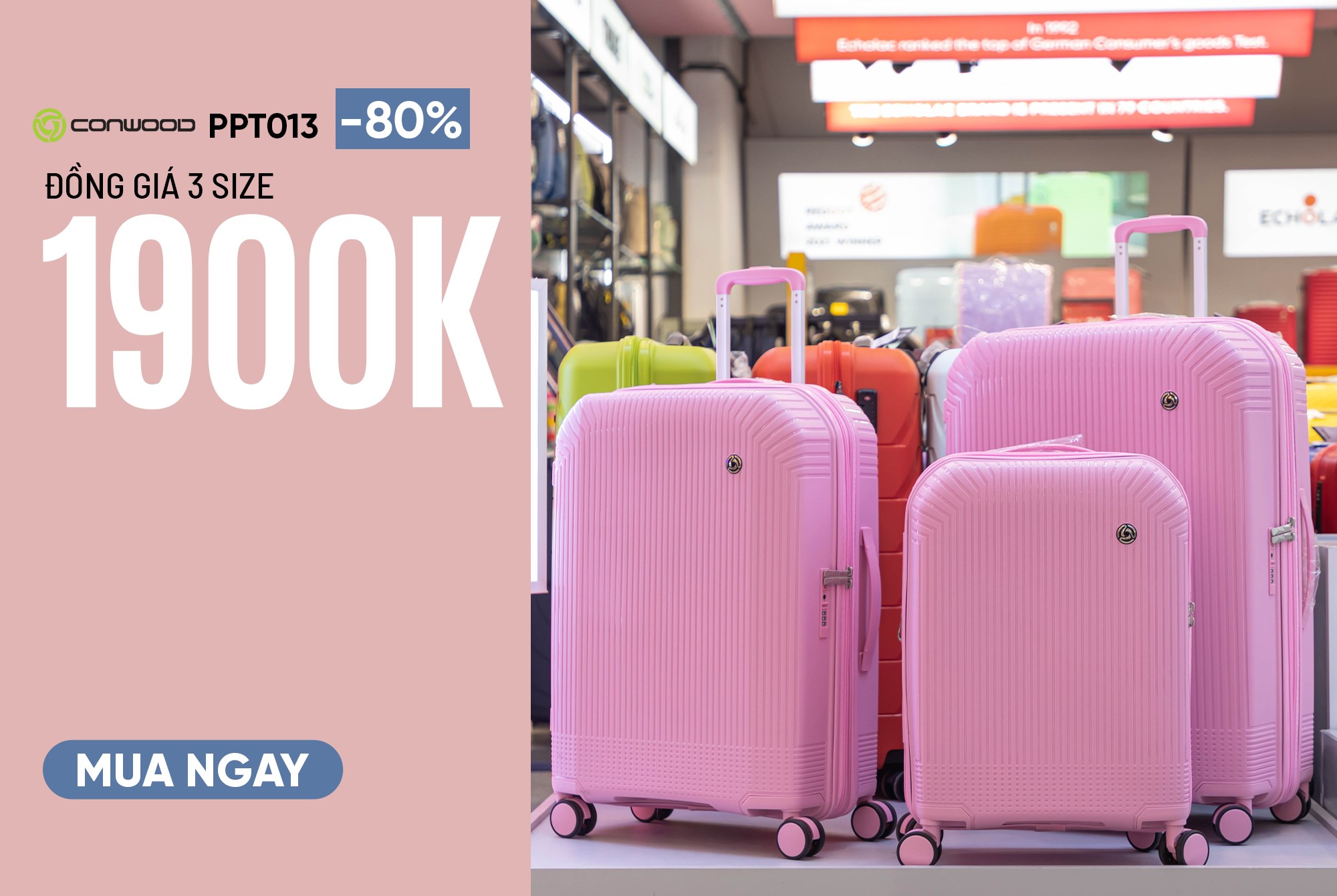 PPT013 hiện đang là siêu phẩm vali nằm trong top bán chạy tại LUG. Nếu như bạn không quá quan tâm về ngăn đựng laptop hay cổng sạc tích hợp thì đây là một lựa chọn vô cùng hoàn hảo bởi khả năng chống bể vỡ đỉnh cao cùng các chi tiết đạt tiêu chuẩn kiểm nghiệm quốc tế. Với Conwood PPT013 bạn có thể an tâm dịch chuyển xa - gần liên tục mà không lo hành lý hư hỏng nhanh.