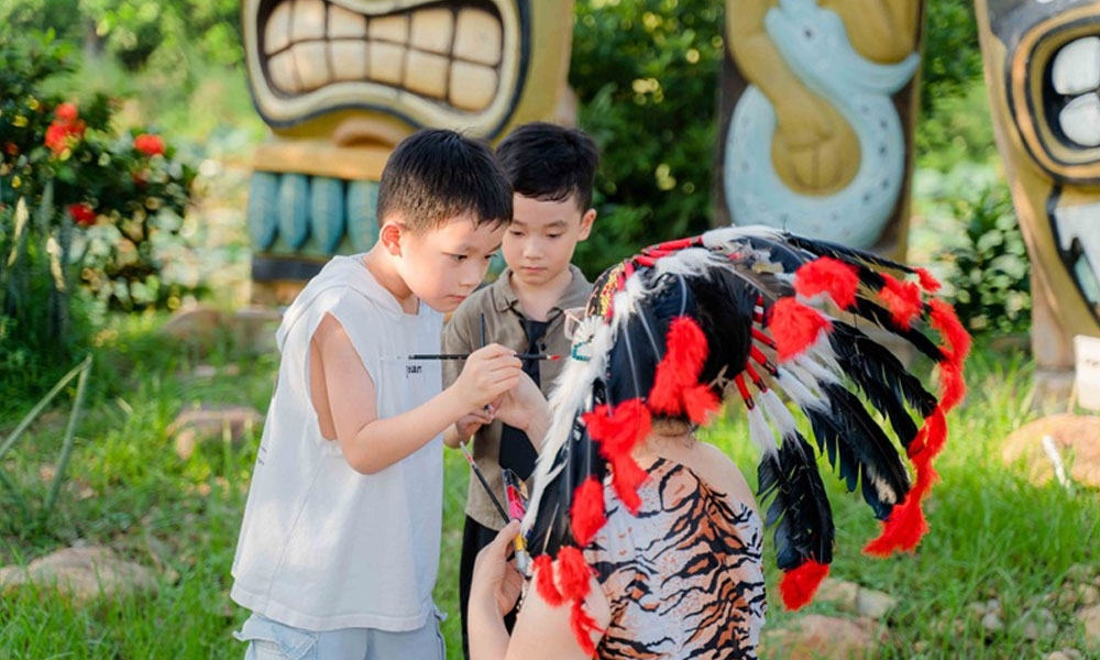 Nếu như địa điểm trước tái hiện lại ngôi làng của những người lùn Hobbit thì khu vực này sẽ giúp bạn được hòa mình vào ngôi làng của những người dân da đỏ. Tại đây, bạn sẽ được thấy những ngôi nhà sàn nằm sâu trong rừng với lối kiến trúc xưa cổ và độc đáo. Những ngôi nhà được xây rất tinh tế và tỉ mỉ, những người thợ đã sử dụng các vật liệu gỗ đơn giản mà đã dựng lên cho chúng ta một không gian trải nghiệm chân thực trước văn hóa bộ lạc người da đỏ.