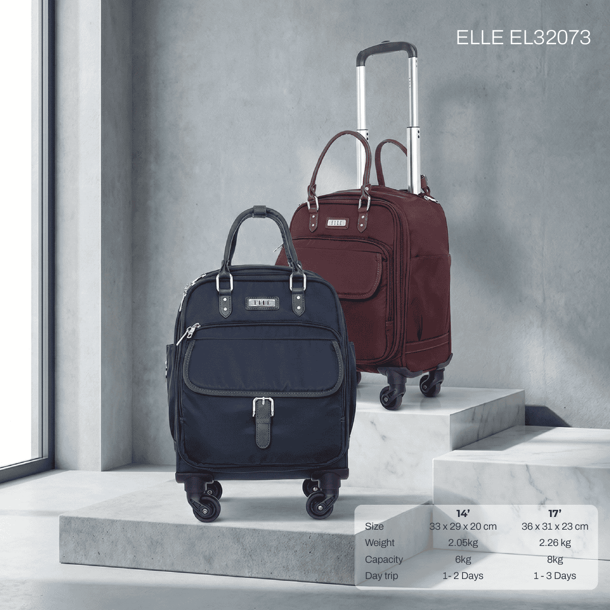 Mang thiết kế trẻ trung đến từ thương hiệu thời trang Pháp ELLE, mẫu túi kéo EL32073 là lựa chọn lý tưởng cho những chuyến đi 1 - 3 ngày, thích hợp công tác nhanh hoặc du lịch cuối tuần.