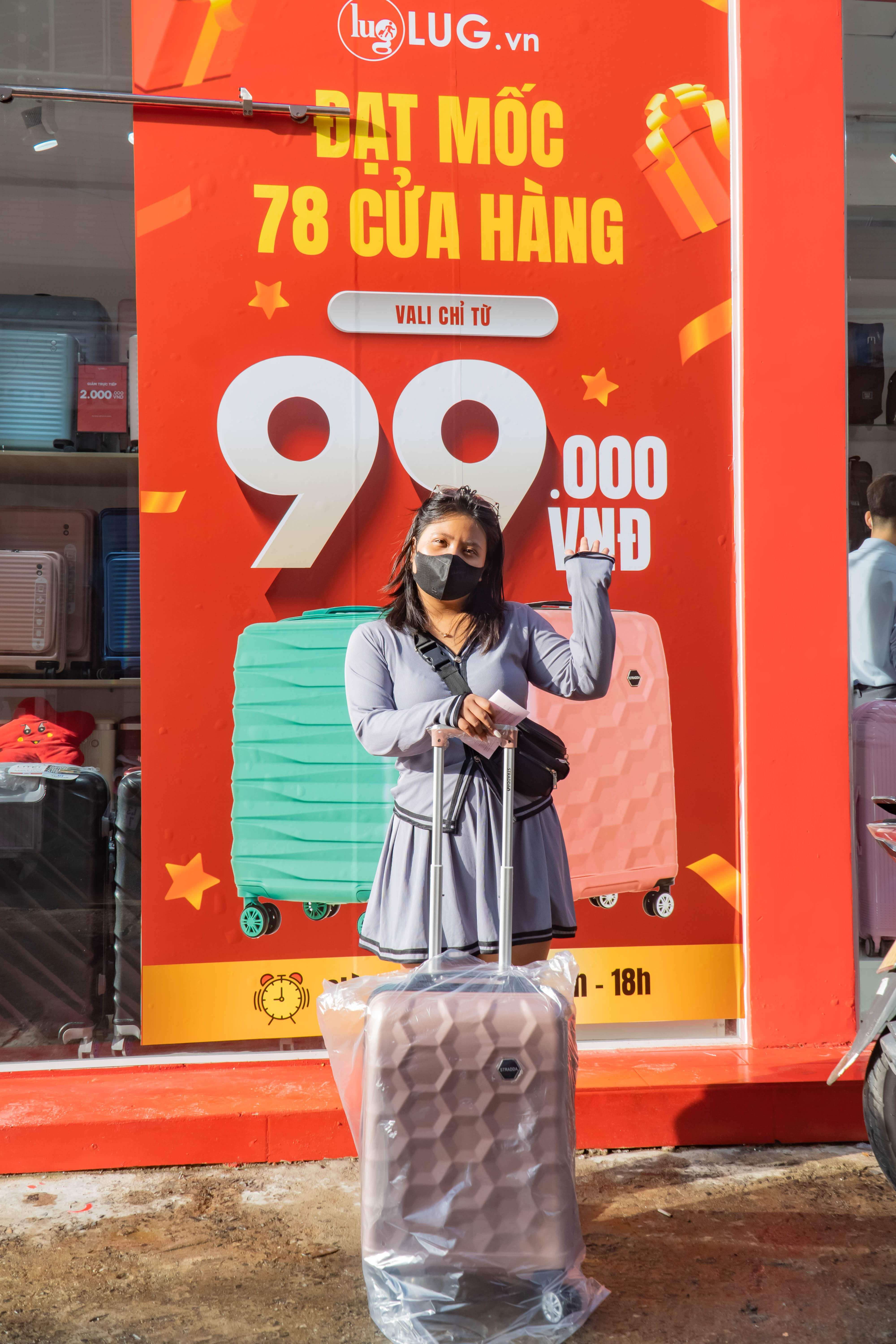 Nhiều khách hàng đến sớm đã săn được chiếc vali 99k siêu hời. Cùng chiêm ngưỡng chân dung những vị khách may mắn và chiếc vali cực hot này nhé!