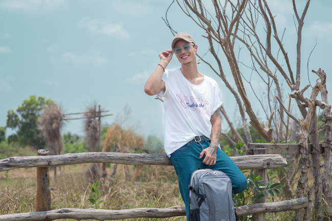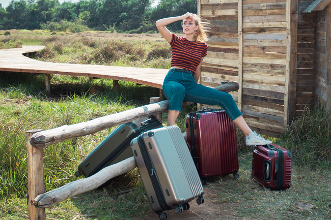 6. Tay tựa vali, mỉm cười tươi