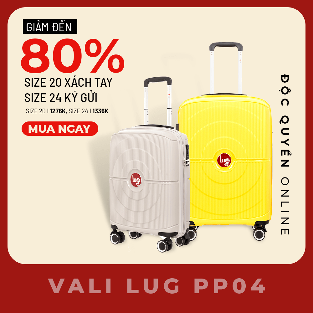 Đây là dòng vali 10kg được sản xuất độc quyền bởi LUG.vn với khả năng chống vỡ đỉnh cao. Với cấu tạo nhựa PP đàn hồi tốt, LUG PP04 tự tin thách thức mọi va đập mà không lo hành lý bị bể vỡ. Dây kéo thiết kế theo công nghệ 2 lớp, giúp tối ưu khả năng chống rạch trộm. Bảng màu xu hướng đa dạng, cho bạn nhiều lựa chọn để phù hợp với phong cách bản thân. Mã vali đang được giảm sâu đến 80% và miễn phí giao hàng toàn quốc.