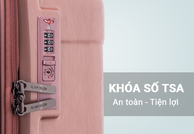 Vali Alain Delon Adele AD1706 có bộ khóa số TSA được tích hợp giúp cho vali có độ bảo mật an toàn cao nhất, bạn không cần phải lo việc vali bị cắt hay bẻ khóa hoặc bị hỏng.