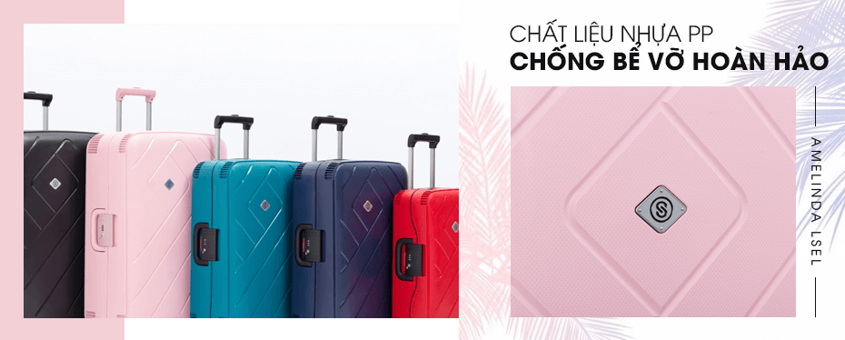 Lusetti Amelinda Lsel được làm từ chất liệu nhựa PP 100% có khả năng chống bể vỡ tốt, chống thấm nước và độ đàn hồi cao, hạn chế trầy xước khi va chạm và giữ được màu sắc nguyên vẹn của vali, cho bạn sự an tâm tuyệt đối khi ký gửi hành lý.