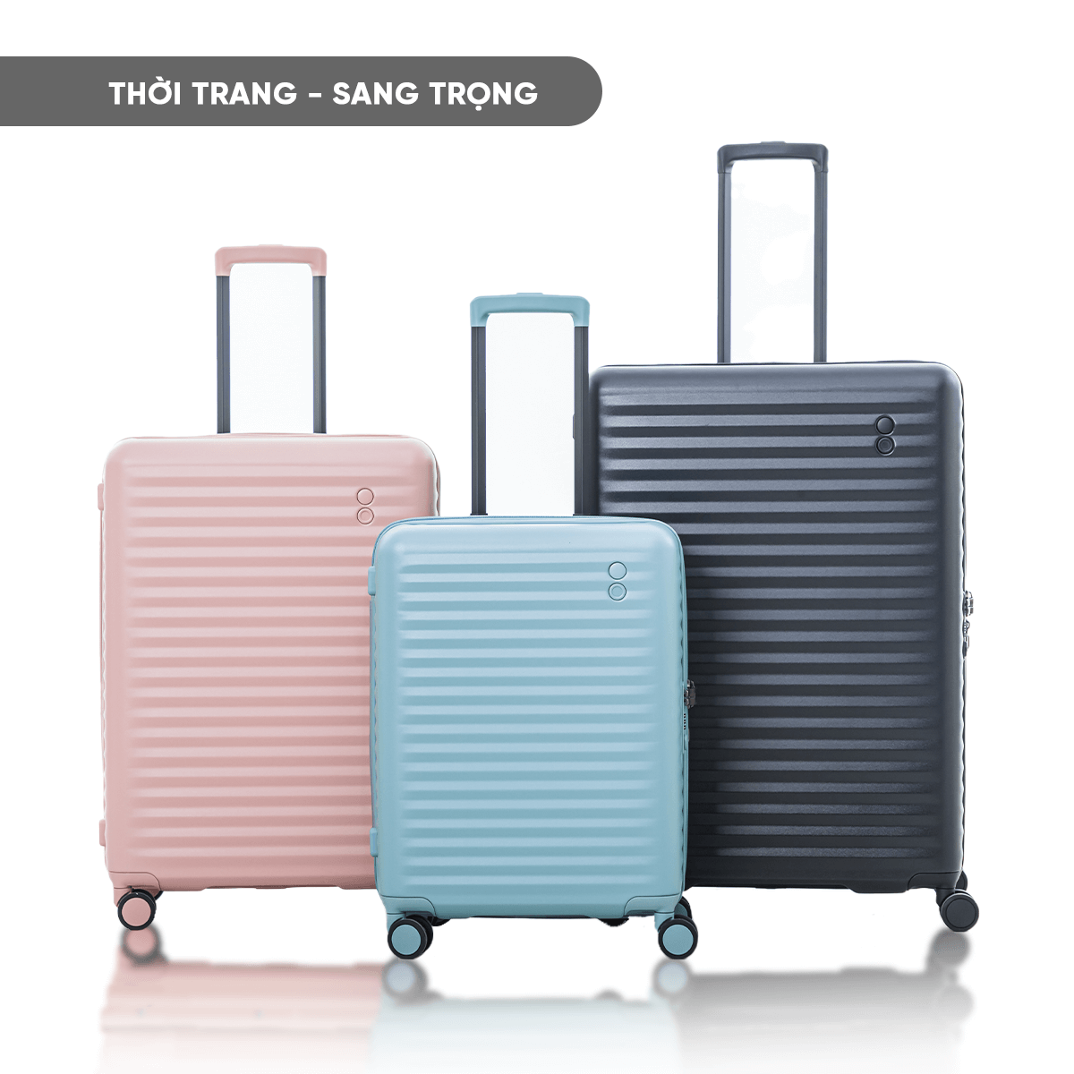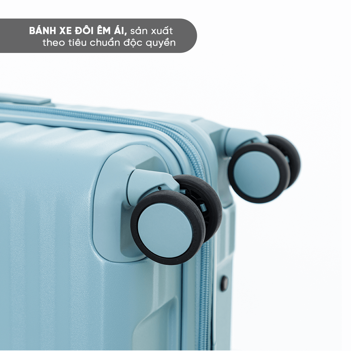 Hệ thống bánh xe kép 8 bánh cao cấp của ECHOLAC được thiết kế với cơ chế xoay 360° mượt mà, mang lại trải nghiệm di chuyển êm ái và ổn định trên mọi địa hình. Chất liệu và cấu trúc tinh xảo giúp hạn chế rung lắc, giảm tiếng ồn tối đa, để mỗi bước hành trình đều nhẹ nhàng và thoải mái.